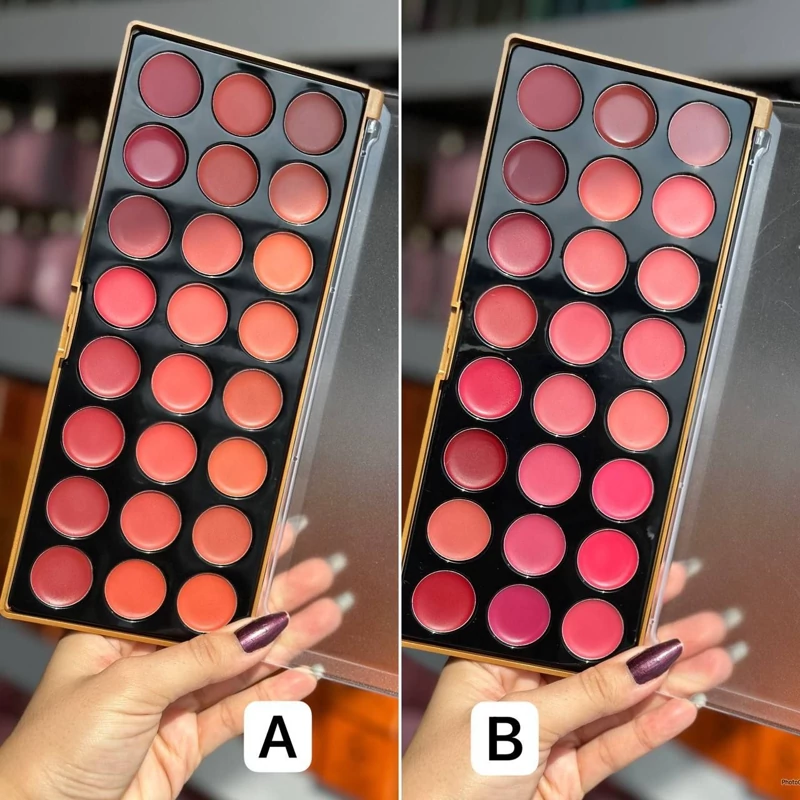 این پالت 24 رنگ حاوی عصاره کره کاکائو و ویتامین E است که از خشکی و ترک خوردن لب ها جلو گیری میکند. دارای رنگدانه های طبیعی پوشش دهی کامل روی لب است.بافتی آبرسان دارد که از خشکی لب جلوگیری میکند و نرم کننده ی لب نیز هست. قدرت عمل و ابتکار در دستان شماست با ترکیب رنگ های این پالت هزاران رژ لب جدید خلق کنید و از رنگ های غیر تکراری و خاص لذت ببرید .
