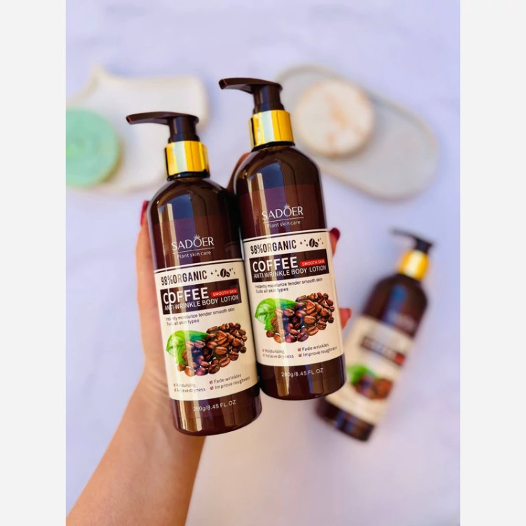 رایحه قهوه شرکت سادور مرطوب کننده پوست تغذیه کننده پوست متعادل کننده آب و چربی پوست نرم کننده بدن آبرسان پوست سفید کننده پوست بهبود خشکی پوست مناسب انواع پوست مناسب برای استفاده بعد از حمام حجم 260 میل