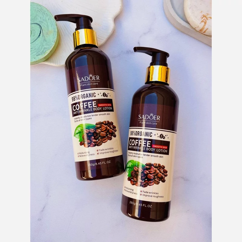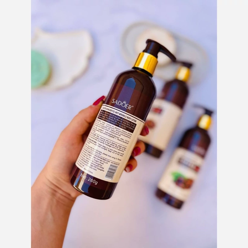 رایحه قهوه شرکت سادور مرطوب کننده پوست تغذیه کننده پوست متعادل کننده آب و چربی پوست نرم کننده بدن آبرسان پوست سفید کننده پوست بهبود خشکی پوست مناسب انواع پوست مناسب برای استفاده بعد از حمام حجم 260 میل