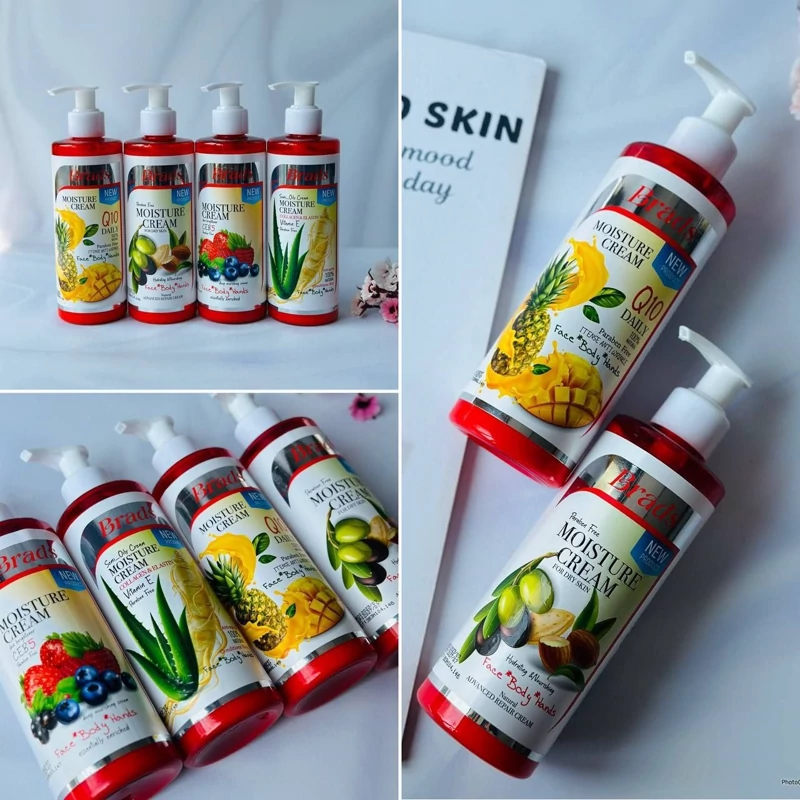 •در 4 رایحه میوه ای •رایحه انبه و اناناس •رایحه روغن زیتون و بادام •رایحه الورا و جنسیتک •رایحه بلوبری و توت فرنگی و تمشک •بسیار خوش بو •حاوی ویتامین های C,E,B5 • حاوی کلاژن و Q10 250 میل •مناسب انواع پوست •حفظ رطوبت پوست، رفع خشکی و التهابات پوستی، تسکیندهنده، تامین مواد مغذی، تقویت پوست •آبرسان قویی مرطوب کنندهها با افزایش انعطاف پوست بروز چین و چروک را به تعویق انداخته و عمق خطوط ایجاد شده را کاهش میدهند. دو عملکرد اصلی مرطوب کننده رساندن آب از لایههای زیرین پوست به سطح آن جهت آبرسانی بوده و جلوگیری از دست رفتن رطوبت پوست مرطوب کننده با ایجاد لایه محافظ چربی از خشک شدن و از بین رفتن رطوبت پوست جلوگیری میکند. مرطوب کننده مواد مغذی را به پوست رسانده و موجب حفظ سلامت و شادابی پوست میشود. گنجاندن مرطوب کننده در روتین پوستی به جوانسازی پوست کمک کرده و بافت و ظاهر پوست را بهبود میبخشد. در 4 رایحه جنسینگ و الورا اناناس و انبه زیتون و روغن بادام توت فرنگیو بلوبری وتمشک
