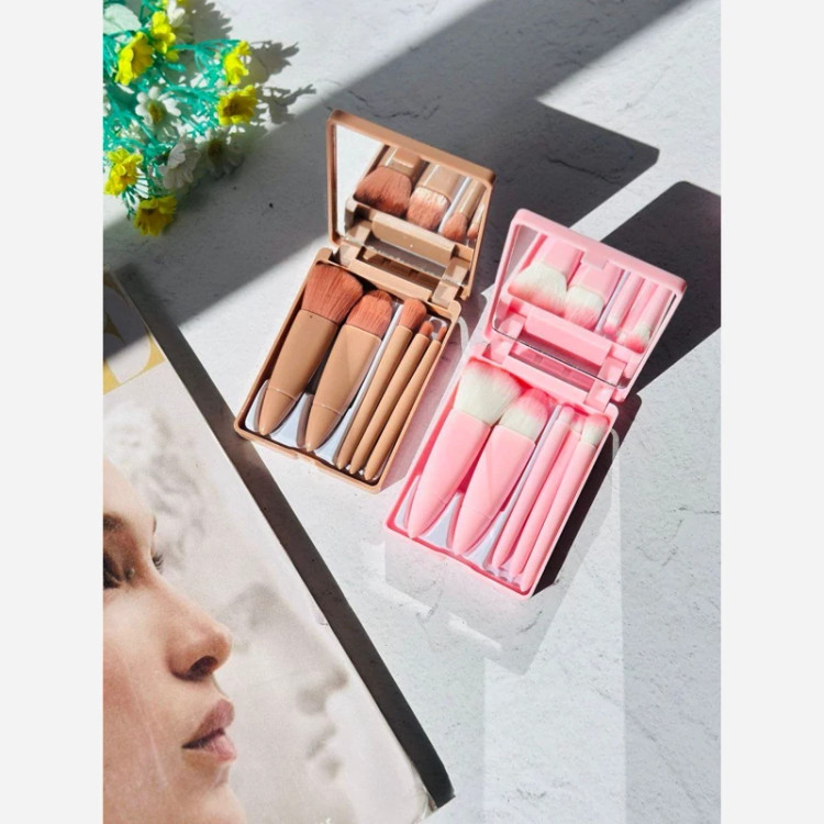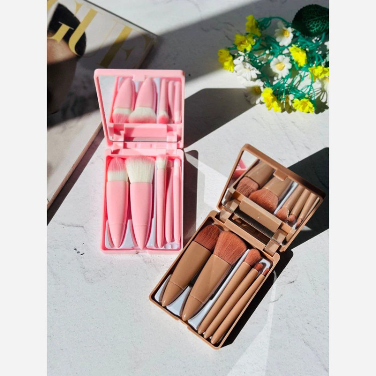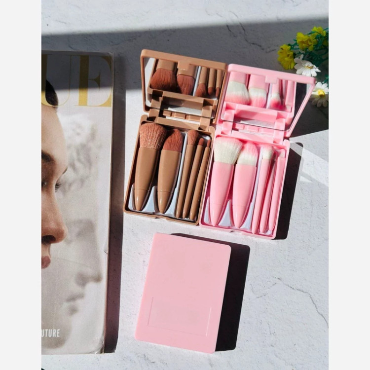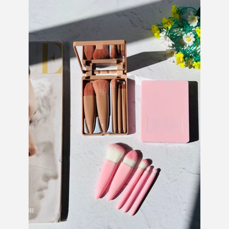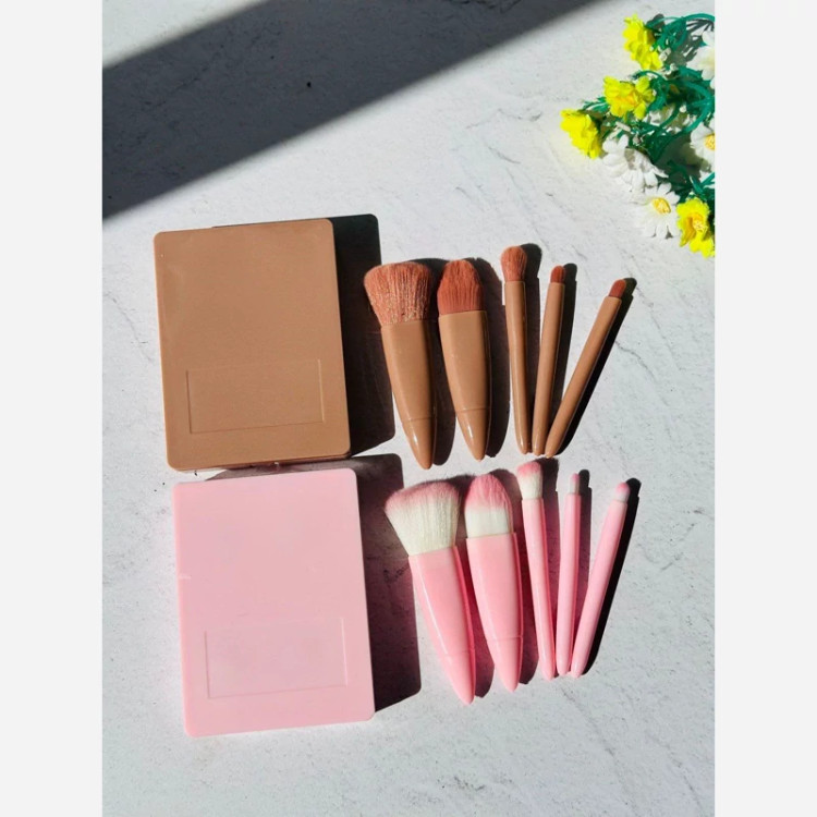 2رنگ صورتی و قهوهای تو باشی و یه ست براش 5تکهی خوشگل با آینه... دیگه چی میخوای از زندگی؟ براشایی نرمتر از ابرا آینهای جمعوجور برای روتوشای دقیقهنودی و یه استایل جیبی که عاشقش میشی! واسه اون روزایی که نمیخوای سنگین آرایش کنی، ولی دلت یه حس قشنگ میخواد! قیمتش هم به قشنگیشه، نه به گرونیش! بپر تو پیوی تا مال تو شه!