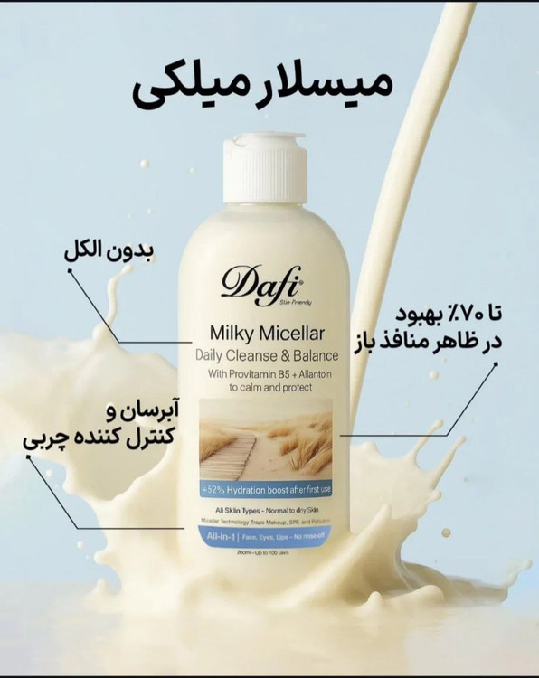 اگر به دنبال یک محلول آرایش پاککن با قدرت پاککنندگی بالا و بدون ایجاد خشکی هستید، محلول میسلار واتر دافی مخصوص پوست خشک انتخابی هوشمندانه برای شما است. این میسلار واتر با فرمولاسیون شیری و ملایم، آرایش صورت، چشم و لب را بدون تحریک یا خشکی، بهطور کامل پاک میکند.
